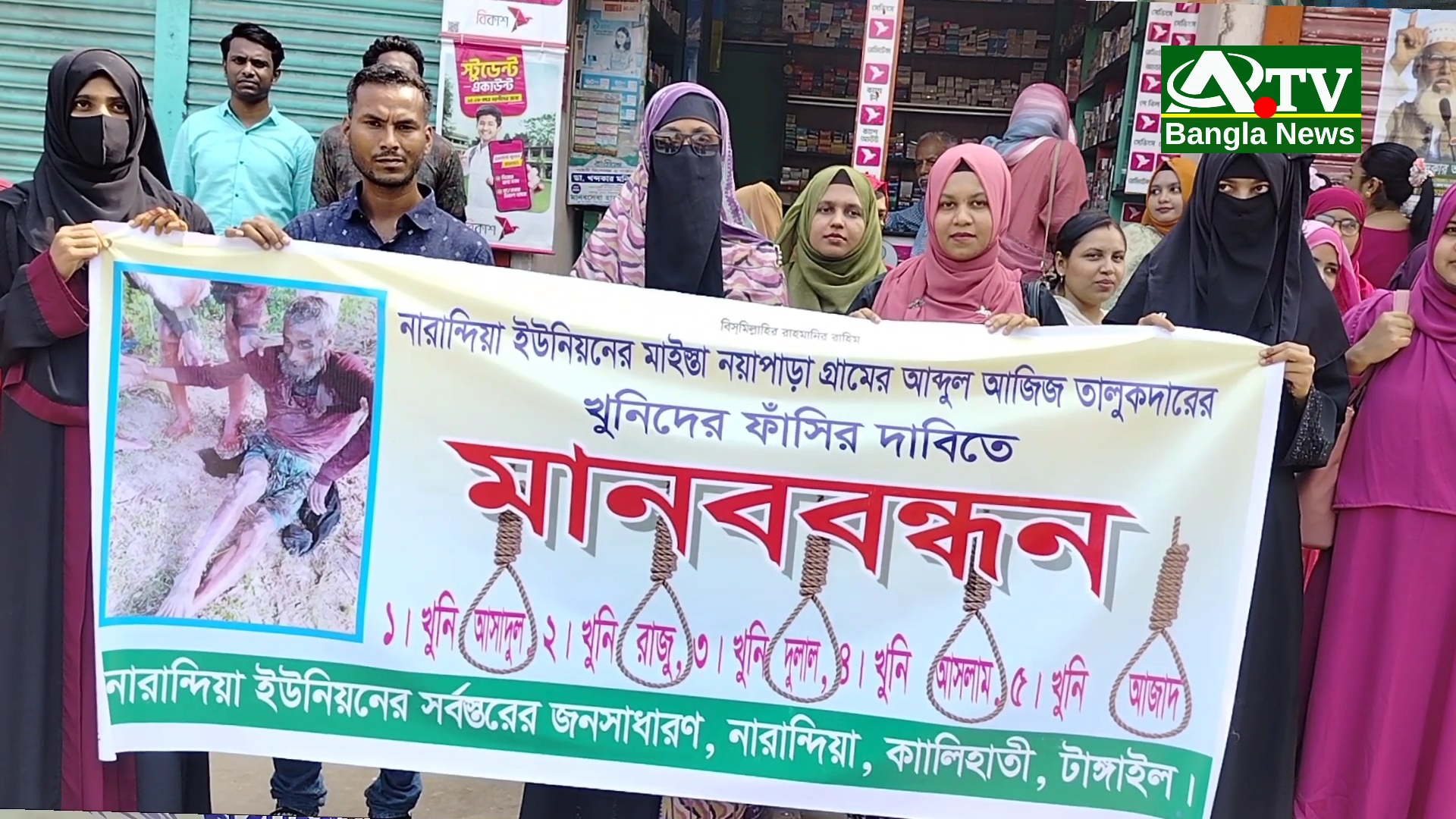 কালিহাতীতে আব্দুল আজিজের হত্যাকারীদের গ্রেফতার ও ফাঁসির দাবিতে মানববন্ধন