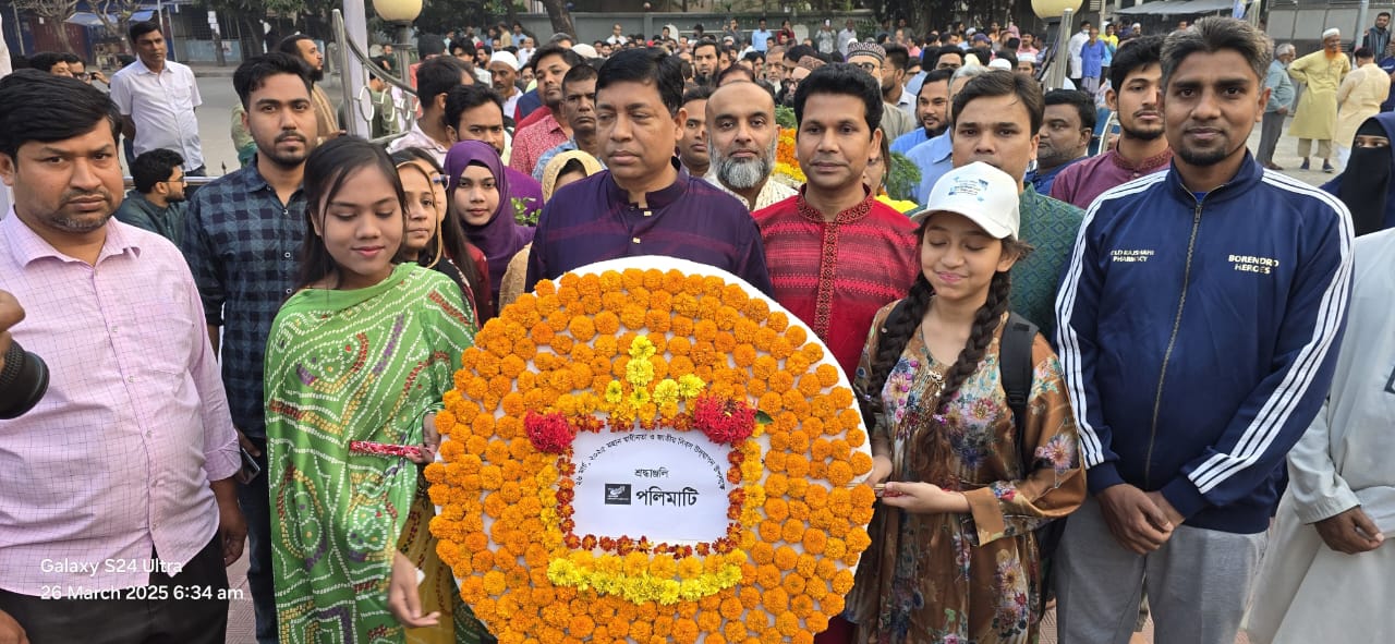 স্বাধীনতা দিবসে শহীদদের প্রতি পলিমাটি’র শ্রদ্ধা নিবেদন ২৬ মার্চ ২০২৫ তারিখ বুধবার মহান স্বাধীনতা ও জাতীয় দিবসে মুক্তিযুদ্ধে আত্মদানকারী শহীদদের