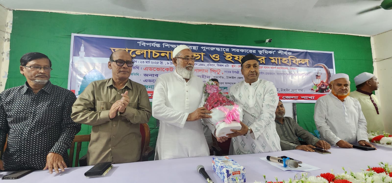 আলোচনা সভা ও ইফতার মাহফিল। শিক্ষক কর্মচারী ঐক্যজোট টাংগাইল জেলা কর্তৃক আয়োজিত বিপর্যস্ত শিক্ষাব্যবস্থা পুনরুদ্ধারে সরকারের ভূমিকা শীর্ষক আলোচনা সভা